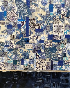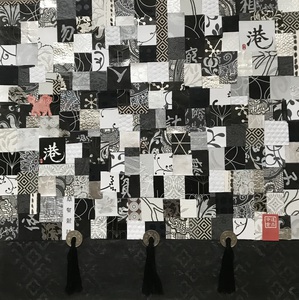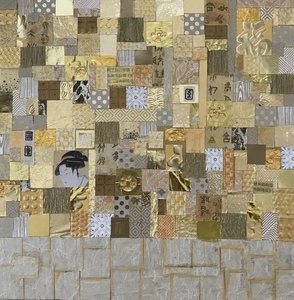 2003Beschilderde collage ondergrond van chinese kranten en gelukspapier