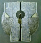 2018Deze kimono is wat koeler qua sfeer door de gekozen kleur en materialen. Tegelijkertijd ook weer stoer. Wit wordt niet gebruikt in gewaden in Japan of China. waarschijnlijk vanwege de betekenis van wit in deze culturen. Werk op doek.