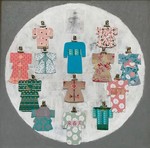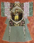tweede serie schilderijen/collages met het thema Kimono op doek, paneel en papier