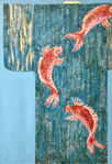2020Yu is het chinese woord voor vis en vissen staat in de chinese cultuur symbool voor welstand en overvloed in het leven. Beschilderde collage op paneel.